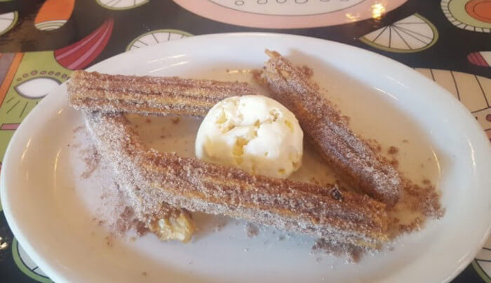 Crisp, golden sticks coated in cinnamon sugar, served warm alongside a scoop of vanilla ice cream.